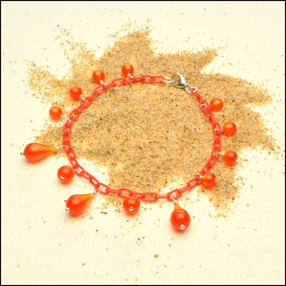 Lightweight Tomato Red Anklet with Moonglow Fireball Teardrops